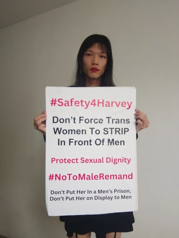 Loh issued a press release about why she decided to protest, listing in detail the many reasons why forcing Transgender women into male prisons is psychologically and physically torturous, along with specific instances of rape perpetrated by security personnel against Harvey. Loh said she was willing to put her own safety on the line to highlight the injustices Transgender women face in prison all over the world.