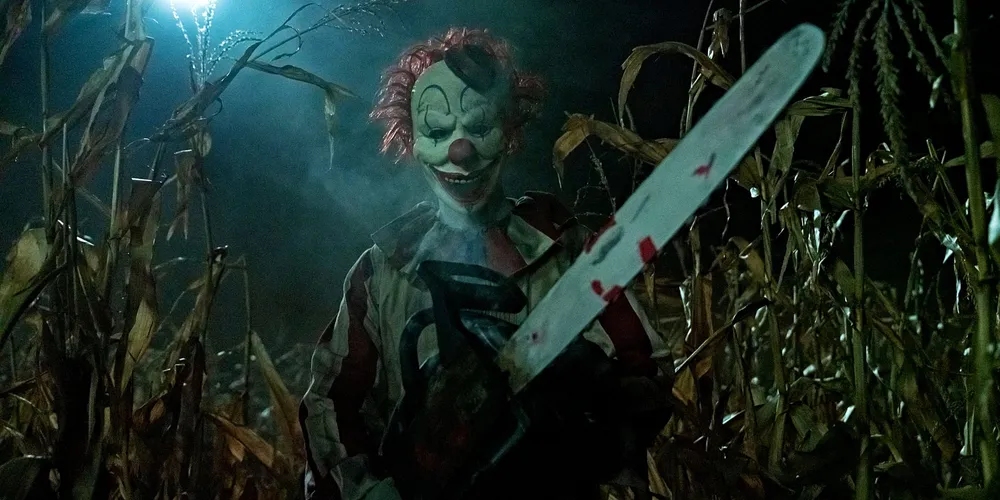 If nothing else, Clown in a Cornfield delivers on everything hinted at in its title. There is a clown, Frendo, the incarnation of a beloved small-town corporate mascot. This clown spends tons of time in cornfields, and not only because the business he’s the face of happens to make corn syrup but also because that’s where many of the community’s most troublesome teenagers tend to frolic.