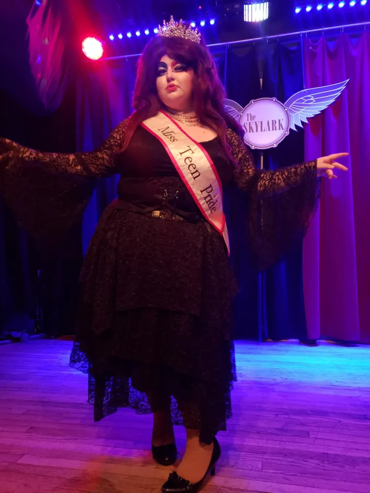 Ember Royale Touché, Miss Teen Pride of 2024–25, is a “mortuary Trans male historian” by day and an exquisite drag queen by night. Mainstream drag, like that popularized by RuPaul's Drag Race, has often centered around cisgender Gay men dressing in exaggerated feminine personas for entertainment. But Ember is different. Assigned female at birth, Ember transitioned in 2018, then started drag around six years ago, doing cosplay.