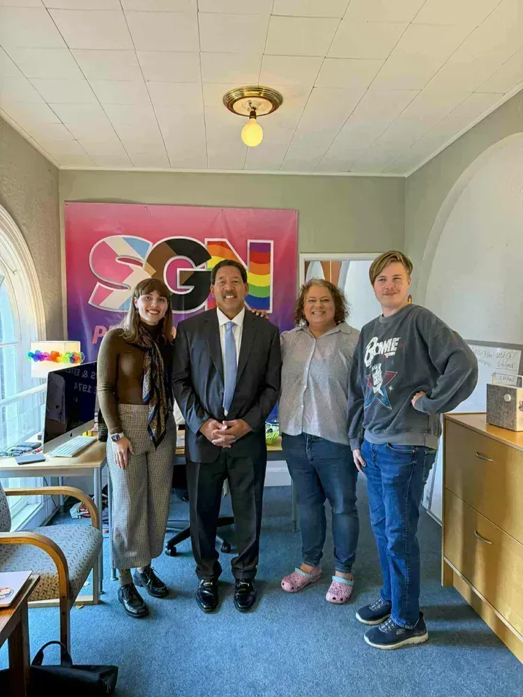 The mayor visits the SGN office Sept. 30 (L-R): SGN Managing Editor Madison Jones, Seattle Mayor Bruce Harrell, SGN Publisher Renee Raketty, SGN Associate Editor C.J. Emerson   Madison Jones