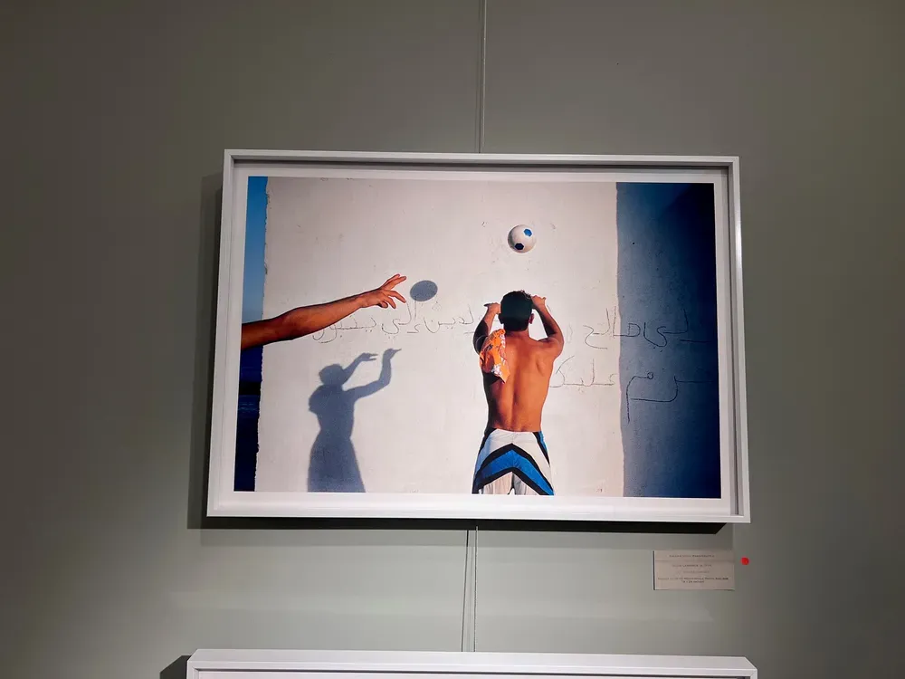 When asked which of the images displayed in the gallery is his favorite, he described a photo titled “Khniss, Tunisia,” depicting a young man playing with a ball as his friend’s arm enters the frame. He said it was the perfect shot.