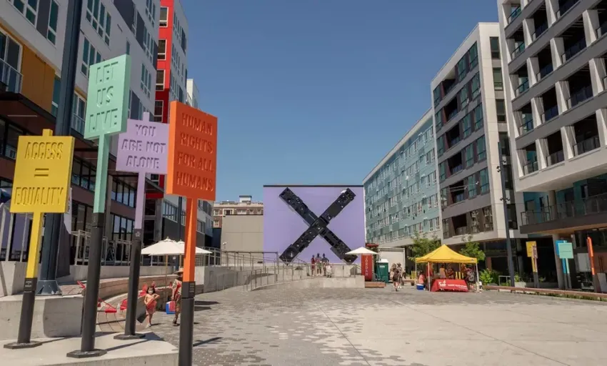 The AIDS Memorial Pathway (AMP) Plaza with artwork