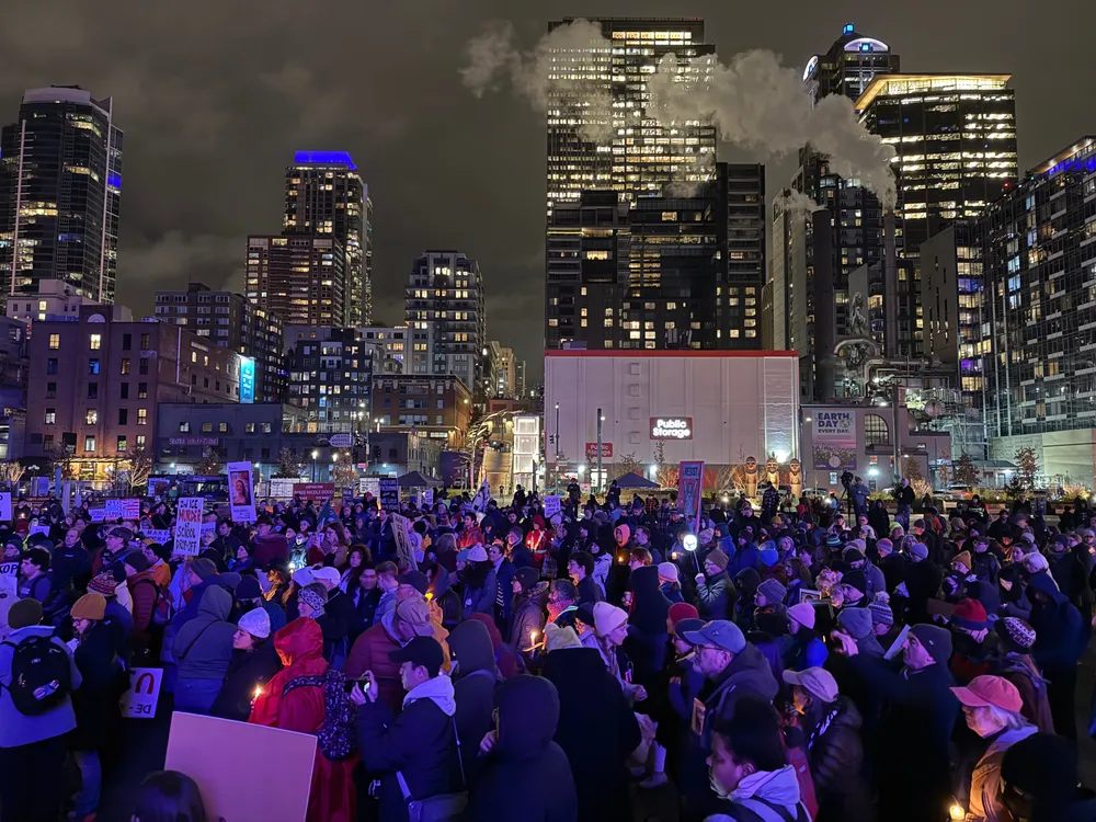 The next evening, Seattle Indivisible and Defund Musk held a vigil for Good at Pier 58, at which several speakers voiced their dissatisfaction with her killers. Kathy Herschel of Seattle Indivisible criticized the Trump administration’s narrative of Good’s death: “Instead of sympathy and understanding, the president and his administration smear her with lies… We will not let ICE lies win out.”