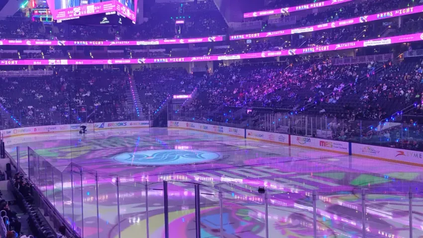 Despite his best efforts, I look back on the game with happiness. Regardless of to what degree events such as Pride Night are earnest attempts by the Kraken to build community or come from a place of rainbow capitalism or something in between is a debate I’m not interested in contributing to, because I got people in my life to come watch a team that I have rooted for since its inception in an arena that they had never before set foot in. I got to see other openly Queer and Transgender people up on the big screen and the whole stadium bathed in the light of the beautiful artwork of Vegas Vecchio and enjoying the music of DJ Orion.