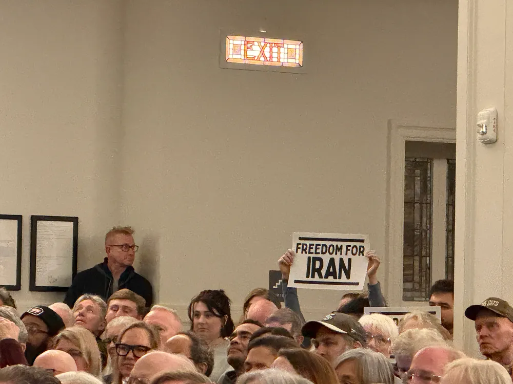 "Freedom for Iran" sign holder in the crowd -   photo credit: Madison Jones