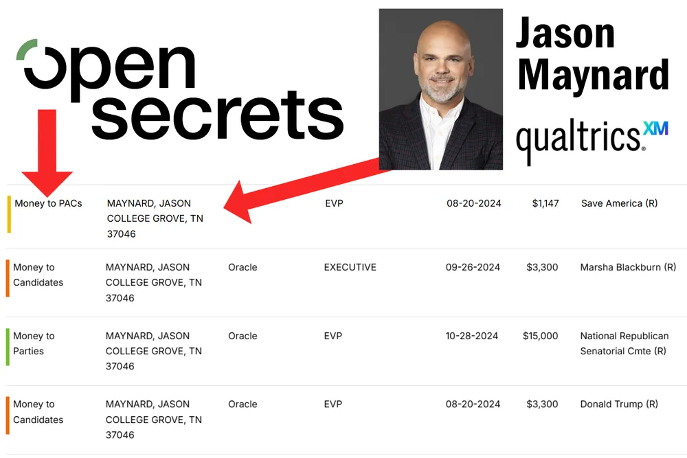 The whistleblower also claimed Maynard has “donated to politics promoting anti-diversity,” which the SGN confirmed. While working his prior job at Oracle, documents show that Maynard donated a total of around $39,000 to Donald Trump, Sen. Marsha Blackburn, the Republican National Committee, and their respective PACs before the 2024 election. Sen. Blackburn is a hardline Republican from Tennessee, where Maynard previously lived.