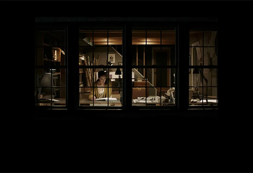 Cinematographer Elisha Christian (Columbus) is a wizard behind the camera. She navigates with pinpoint precision through the twisted, immaculately constructed maze by production designer Kathrin Eder (Life Happens). Shadow and light assault one another. Irregular shapes conspire to form hazily irregular, human-like apparitions that fade back into invisibility when viewed from a different angle. It's extraordinary work.
