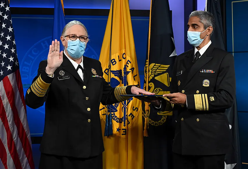 Although she was not previously connected with the US military, Levine was sworn in as an officer of the US Public Health Service Commissioned Corps, a uniformed branch of the US government that is charged with responding to public health crises.