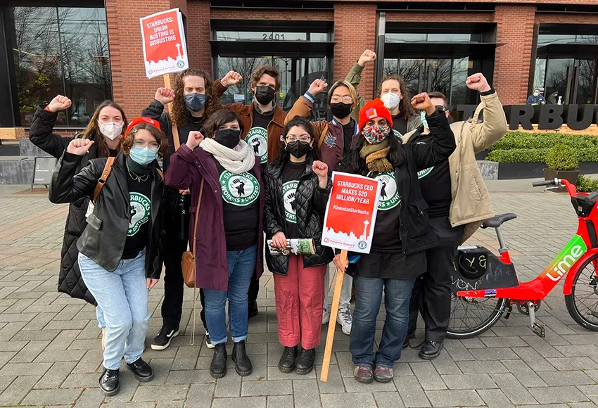 Some Starbucks workers used to be unionized when the company first formed, decades ago, but the coffee mega-corporation successfully broke the early union. Today, only Starbucks-franchised stores at airports and supermarkets have unionized employees.