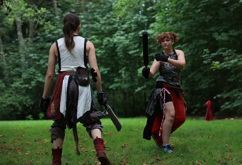Two Amtgardians square off at a tournament – Photo by Jamie Velandra