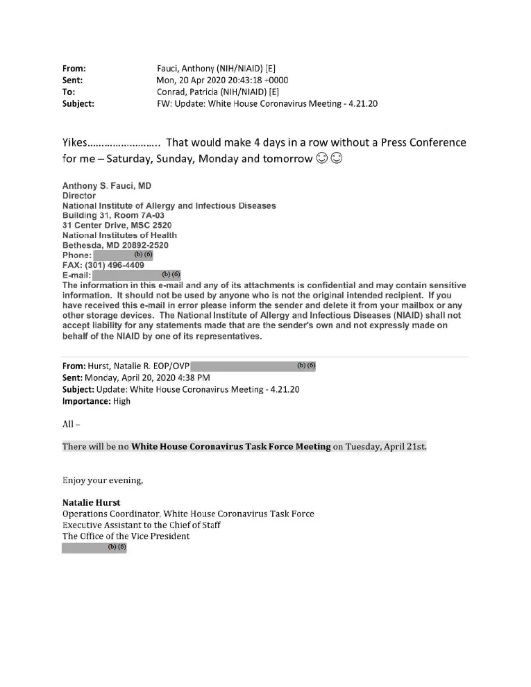 On June 2, 2021, Dr. Fauci's emails from the early months of the pandemic were obtained by the Washington Post, Buzzfeed, and CNN via a FOIA request.