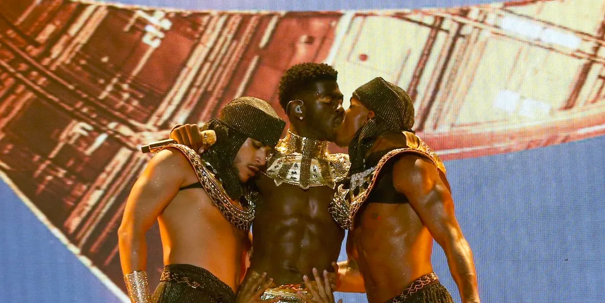 His performance of his hit Montero – which has broken the record for a single by a male solo artist with its 5th week at #1 on Billboard's Global 200 chart – later that night paid homage to Michael Jackson's hit music video Remember the Time. Lil Nas X dominated the stage as a shirtless Pharaoh, in a golden snake circlet, oversized collar and skirt.