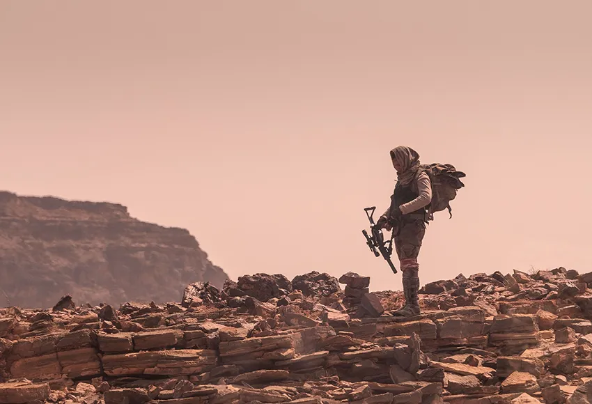 In a remote corner of Mars, colonists Reza (Johnny Lee Miller), Ilsa (Sofia Boutella), and their young daughter Remmy (Brooklynn Prince) diligently work their small farm. They are isolated and alone, so it comes as a surprise when they awaken to a threatening note scrawled across their kitchen window ordering them to leave.