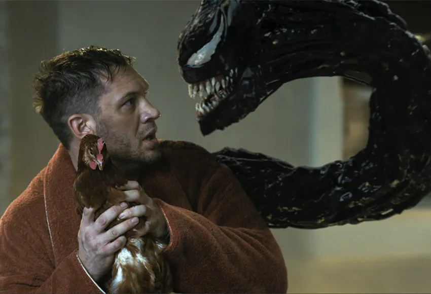 But this is Hardy's show and he knows it. Whether dropping the mic at a neon-lit LGBTQ Halloween rave as Venom or having a heartfelt conversation with a pair of chickens as Brock, the actor does whatever it takes to generate a laugh. He's Jack Lemmon and Walter Matthau – or Peter Falk and Alan Arkin – all rolled into one, his jovial back-and-forth verbal gymnastics a thrillingly goofy highwire act that's simply out of this world.