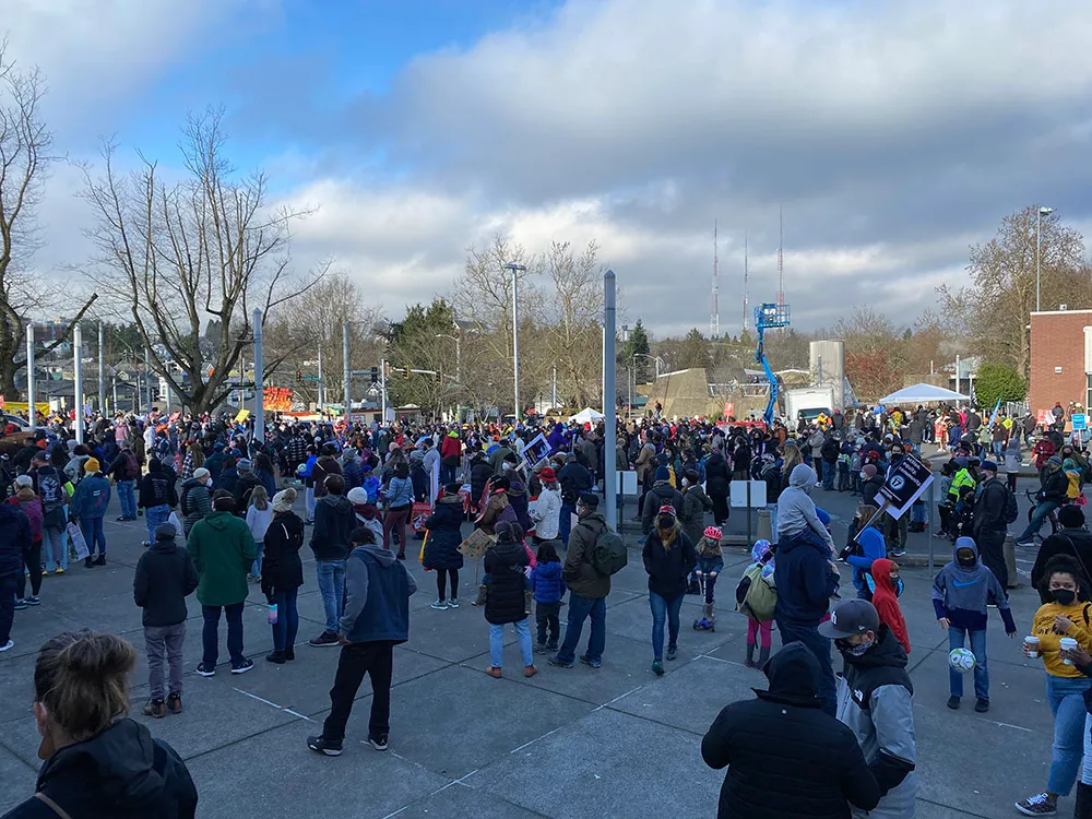 On Monday, Seattle's annual Martin Luther King, Jr. Day celebration drew hundreds to Garfield High School for the 39th consecutive year. Speakers at the rally highlighted the systemic barriers to safety, bias, and well-being for Black youth in Seattle, as well as a tribute to the late community health leader Willie Austin.