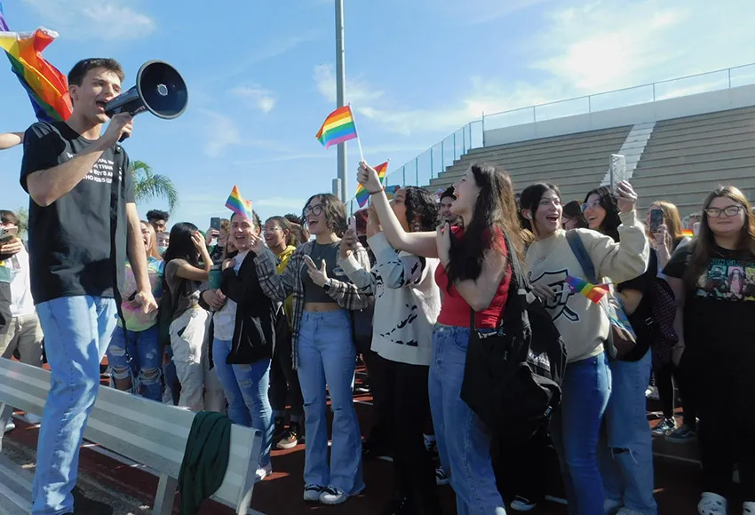 Seventeen-year-old Jack Petocz, an openly Gay junior, was the local organizer at Flagler-Palm Coast High School. He was suspended for handing out pride flags during the walkout. "We must let our politicians know that no matter how hard they try, they cannot suppress our identities or silence our voices," he declared. "Gen Z will not stand idly by as our rights are stripped from us." Public pressure, including an online petition that gathered over 7,500 signatures, got Petocz's suspension lifted within a week.