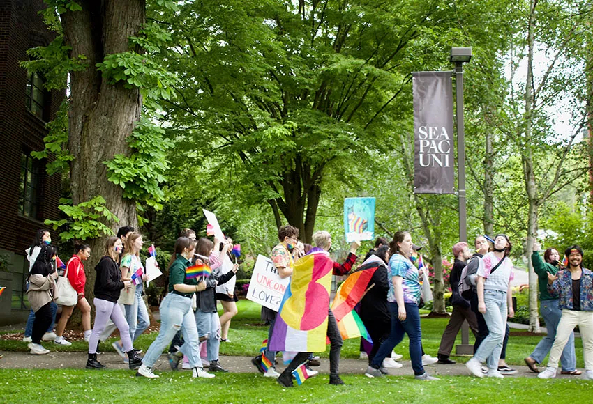 On May 17, 2022, a beautiful Seattle day, the Seattle Pacific University campus was ringing with the chirping of birds – and the chanting of Gay rights activists calling for change. SPU has been the center of controversy since January 2021, when Jeaux Rinedahl, an adjunct professor of nursing, sued the school for hiring discrimination after being denied a full-time position because of his sexuality.