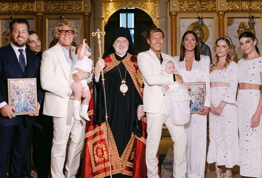 The couple, Evangelo Bousis and Peter Dundas, are internationally known designers, and being of Greek descent, they wanted their children baptized in a Greek Orthodox church in Greece, where they sometimes reside.