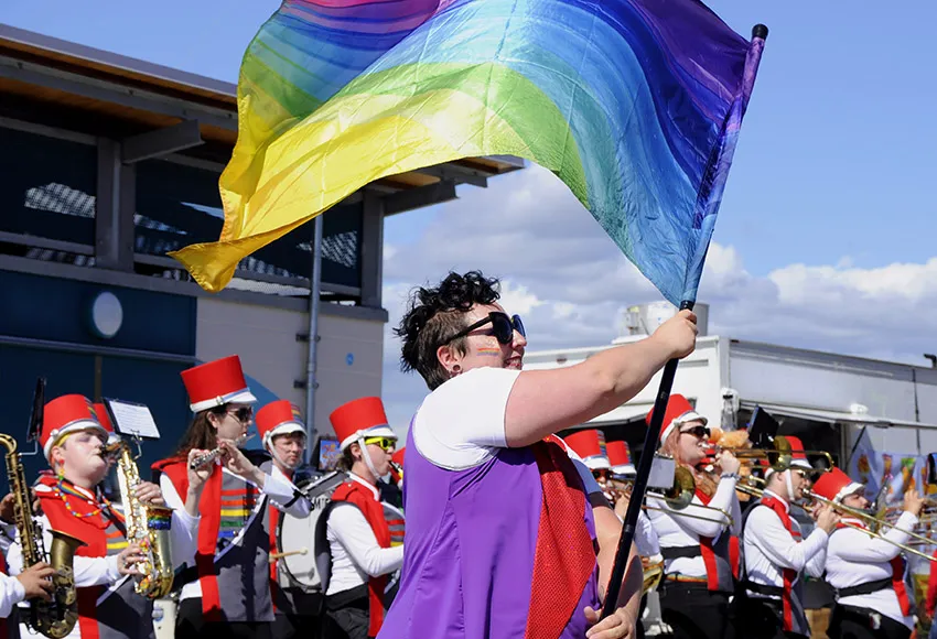 The sun was out and the music was just as radiant at Alki Beach Pride this year, and though dark clouds loomed across Elliot Bay, they kept a distance that respected this grassroots event's return to fully in-person programming after two years of being hybrid.