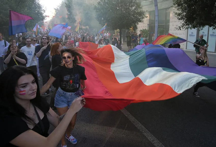 "We have gathered here for the tenth time to show we are human, [that we are] live beings made of flesh and blood, wishes, and dreams, but rejected and ignored, discriminated and trampled upon because of love," said Stasa Bastrica, an activist.