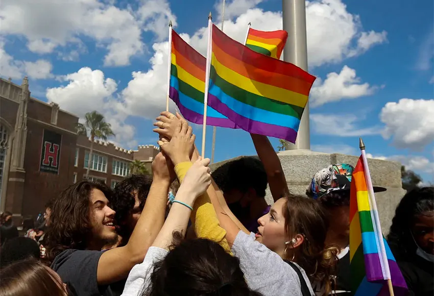 LGBTQ advocates immediately drew comparisons to a new Florida education law barring public school educators from engaging in classroom instruction related to sexual orientation and gender identity, known as the "Don't Say Gay" law to its critics.