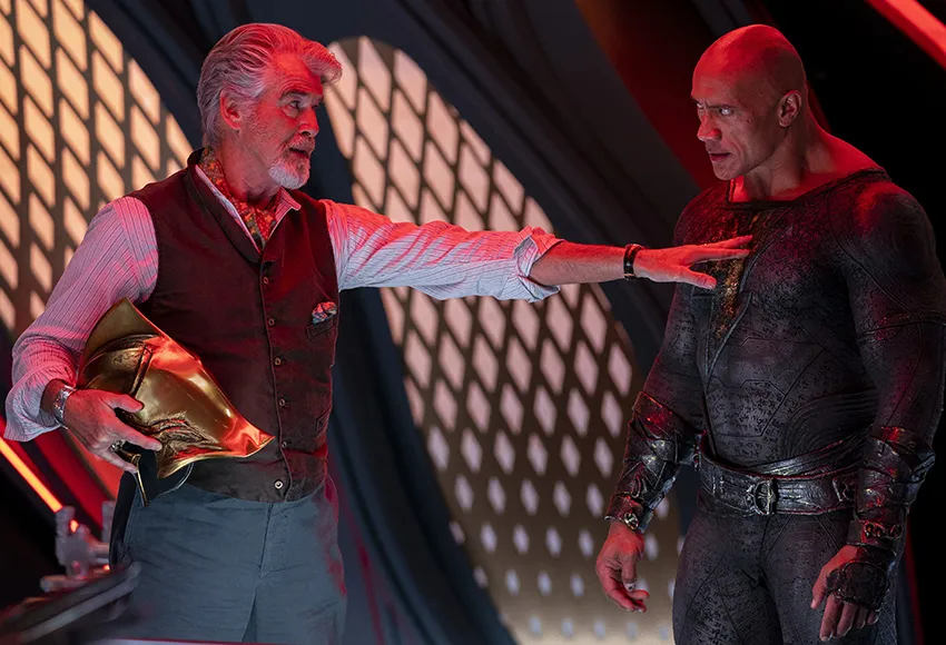 What follows are a series of disconnected scenes in which Adam rips through Intergang like butter, bonds with Amon as the latter tries to teach him how to be a superhero, and has a couple of fights with Hawkman and his compatriots Dr. Fate (Pierce Brosnan), Cyclone (Quintessa Swindell), and Atom Smasher (Noah Centineo), the latter two out on their first save-the-world assignment from Waller. There is also the search for that aforementioned mystical crown, as the person who unlocks its secrets will tap into some seriously demonic, potentially world-ending powers.