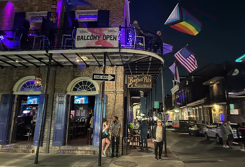 • The Bourbon Pub (808 Bourbon Street) is celebrating its 47th anniversary. It is a lot of fun. Sit on the balcony to enjoy the scene below.