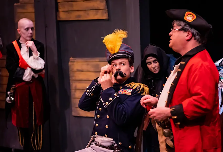 Importantly, it's funny. Pratchett's particular brand of absurd, whimsical satire can be difficult to land, as it's often peppered with pitch-black tragicomedy. The tone can switch at any moment. This cast, however, pulled off the punchlines with aplomb. Ali Kidder-Mostrom's Igor had the audience in stitches. Every moment with the show-stealing Lt. Blouse (Jonathan Swindle) was entertaining, but an early scene where he tells the untrained 10th Regiment that they are going directly to the front lines to die gloriously stands out. Swindle delivers the lines with jovial confidence reminiscent of Monty Python's best and most chaotic work.