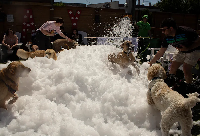 Dog Yard Bar partnered with Leapfrog Foam, a small company with experience doing foam parties for animals. "They're very popular with dogs, and it's an animal- and dog-safe foam. They can fill up a 20 by 20 space five feet high if they wanted to. We're not going to do that much, but I think it will be just enough for the dogs to have fun," Sheil said.
