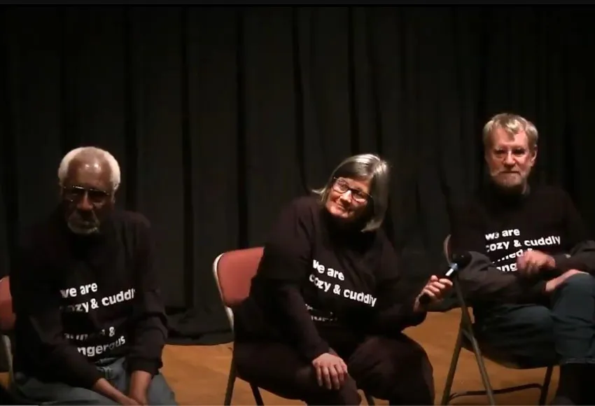 A little under half of the gang got back together at the Northwest Film Forum in 2018. Cook, Mead, and Janine Bertram answered questions from the audience after a screening of Cozy Cuddly, Armed and Dangerous, a documentary about the group.