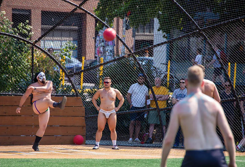 It was a whirlwind of holy habits and sporty straps as two of Seattle's most prominent Gay organizations went head-to-head in a charity kickball game for the ages.