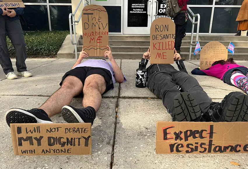 Transgender activists stage die-ins to protest Florida driver's license rules
