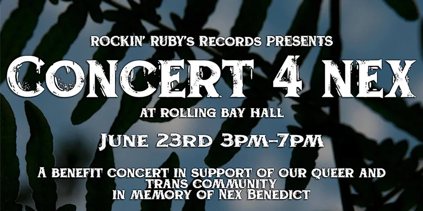 On Sunday, June 23, Poulsbo-based Rockin' Ruby's Records will host a benefit concert in honor of Nex Benedict, a Two-Spirit Indigenous, Nonbinary Oklahoma teen who was reported to have committed suicide following a February assault by a group of high school classmates.