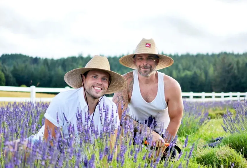 Willapa Valley Lavender Farm, an 11-minute drive from Raymond, WA, is a picturesque place to picnic and purchase bunches of lavender. When they aren't maintaining the flowers or creating fragrant body products, owners Jeff and Paul Karnatz take care of their children and their community.