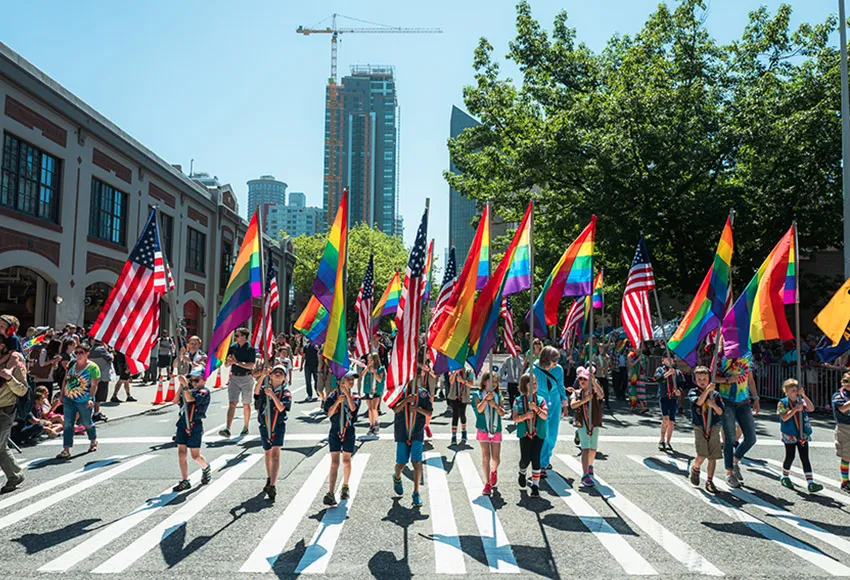 The parade's grand marshal contingent is an intergenerational mix of LGBTQ elders and youth that includes David Neth, organizer of Seattle's first Gay Pride Week; and representatives from community groups, including Camp Ten Trees, GenPride, Lambert House, Seattle's LGBTQ+ Center, and Seattle Public Schools.